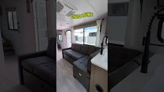 The Salem Cruise Lite 24VIEW floorplan offers standard hung fiberglass exterior and solid surface countertops. Features the Versa-Slide offering additional storage, bunks and capability to utilize as an office. This model bypasses a traditional dinette but offers 18 linear feet of countertop space and the 64 square feet of windows offers a view that is unrivaled in this segment