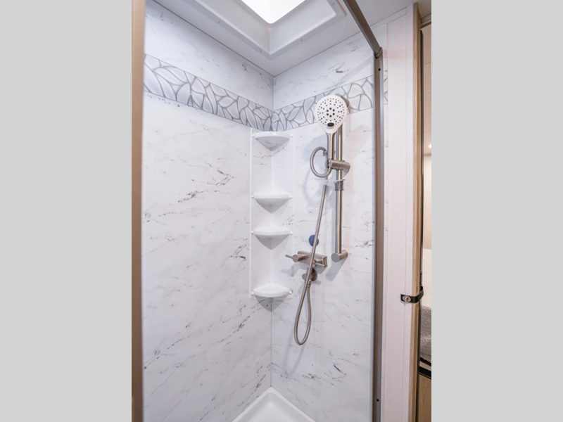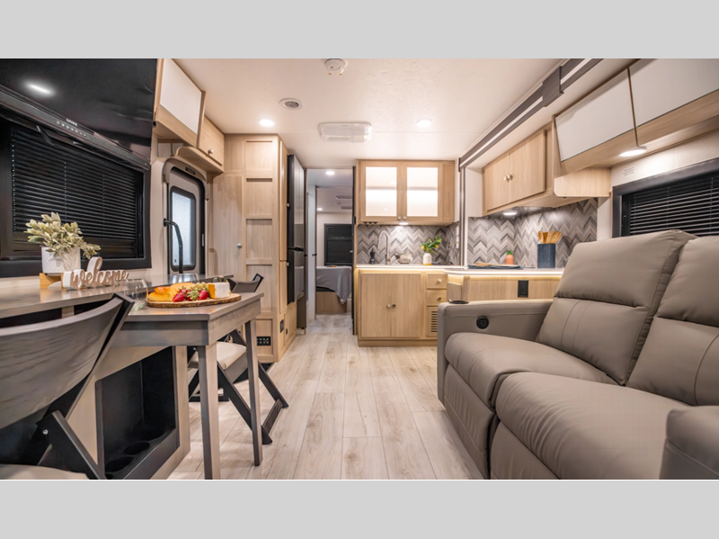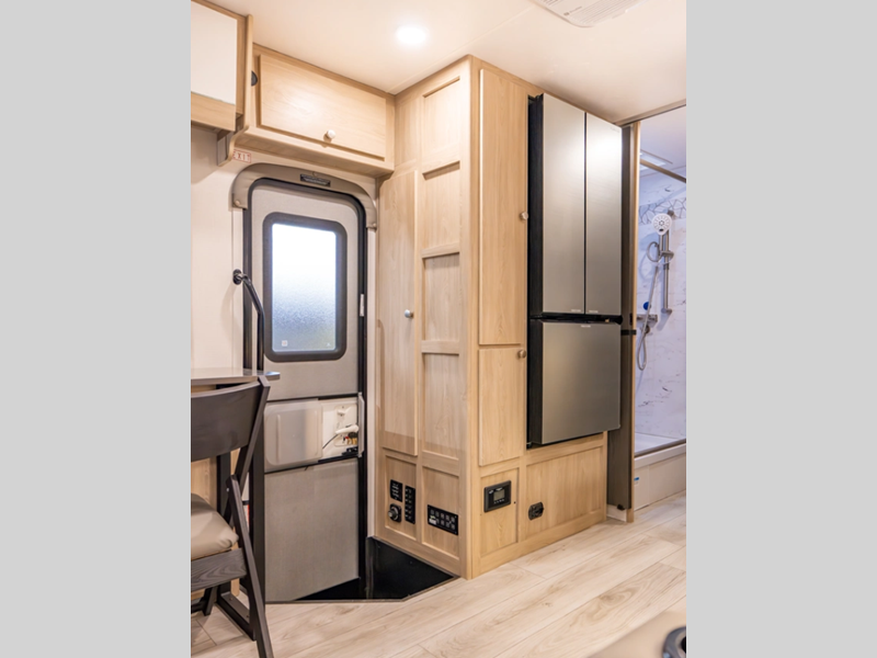 Sleeps 2 Slides 2 Length 32 ft 9 in Ext Width 8 ft 4 in Ext Height 11 ft 2 in Int Height 6 ft 8 in Interior Color Pinehurt, Frinton Bisque Exterior Color Iceland, Ash Hitch Weight 7500 lbs GVWR 14500 lbs Fresh Water Capacity 48 gals Grey Water Capacity 34 gals Black Water Capacity 31 gals Furnace BTU 36000 btu Generator 5500kW Fuel Type Gasoline Engine 7.3L V8 Chassis Ford E-450 Horsepower 325 hp Fuel Capacity 55 gals Wheelbase 223 in Available Beds King Torque 468 ft-lb Refrigerator Type 12V Double Door Refrigerator Size 10 cu ft Convection Cooking Yes Cooktop Burners 2 Shower Size 24" x 36" Number of Awnings 1 Axle Weight Front 5000 lbs Axle Weight Rear 9600 lbs LP Tank Capacity 68 lbs Water Heater Type Tankless AC BTU 30000 btu Basement Storage 105 cu. ft. TV Info LR 40" Smart TV, BR 32" Smart TV, Ext. TV Awning Info 15' Power with LED Lights Washer/Dryer Available Yes Gross Combined Weight 22000 lbs Shower Type Standard Electrical Service 50 amp Solar Wattage 400 watts Similar Floorplans