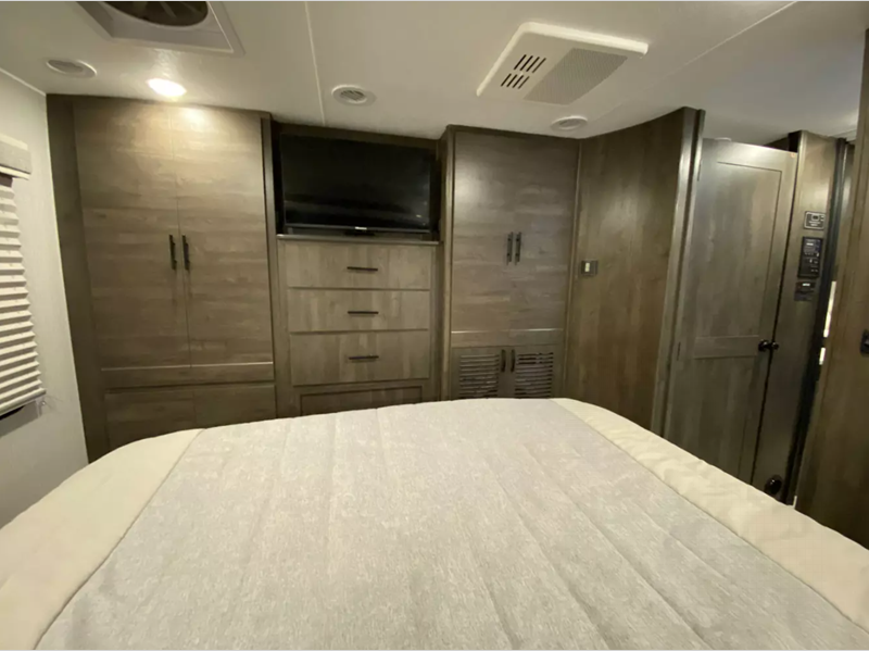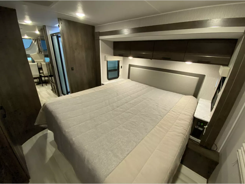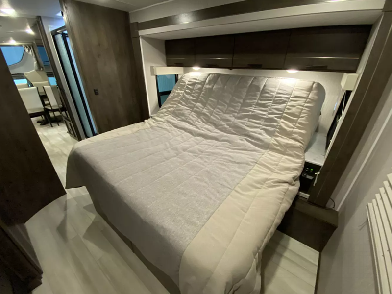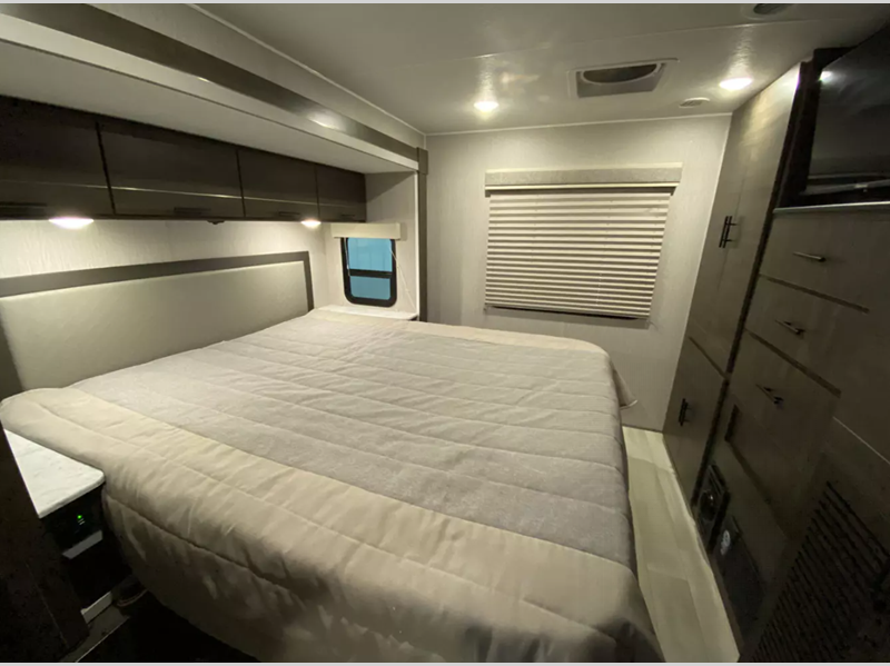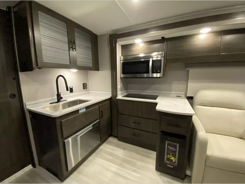 Sleeps 2 Slides 2 Length 32 ft 9 in Ext Width 8 ft 4 in Ext Height 11 ft 2 in Int Height 6 ft 8 in Exterior Color Gold Rush, Sapphire Hitch Weight 7500 lbs GVWR 14500 lbs Dry Weight 13600 lbs Cargo Capacity 1200 lbs Fresh Water Capacity 48 gals Grey Water Capacity 34 gals Black Water Capacity 31 gals Furnace BTU 36000 btu Fuel Type Gasoline Engine 7.3L V8 Chassis Ford E-450 Horsepower 325 hp Fuel Capacity 55 gals Wheelbase 223 in Available Beds King Torque 468 ft-lb Refrigerator Type 12V Double Door Refrigerator Size 10 cu ft Convection Cooking Yes Cooktop Burners 2 Shower Size 24" x 36" Number of Awnings 1 Axle Weight Front 5000 lbs Axle Weight Rear 9600 lbs LP Tank Capacity 68 lbs Water Heater Type Tankless AC BTU 30000 btu Basement Storage 105 cu. ft. TV Info LR 39" Smart TV, BR 32" Smart TV, Ext. TV Awning Info 15' Power with LED Lights Washer/Dryer Available Yes Gross Combined Weight 22000 lbs Shower Type Standard Electrical Service 50 amp Similar Floorplans