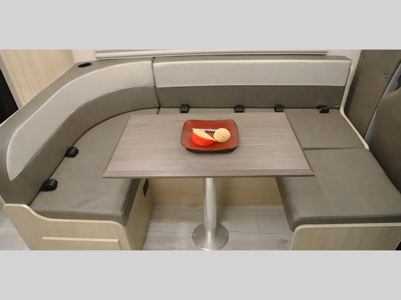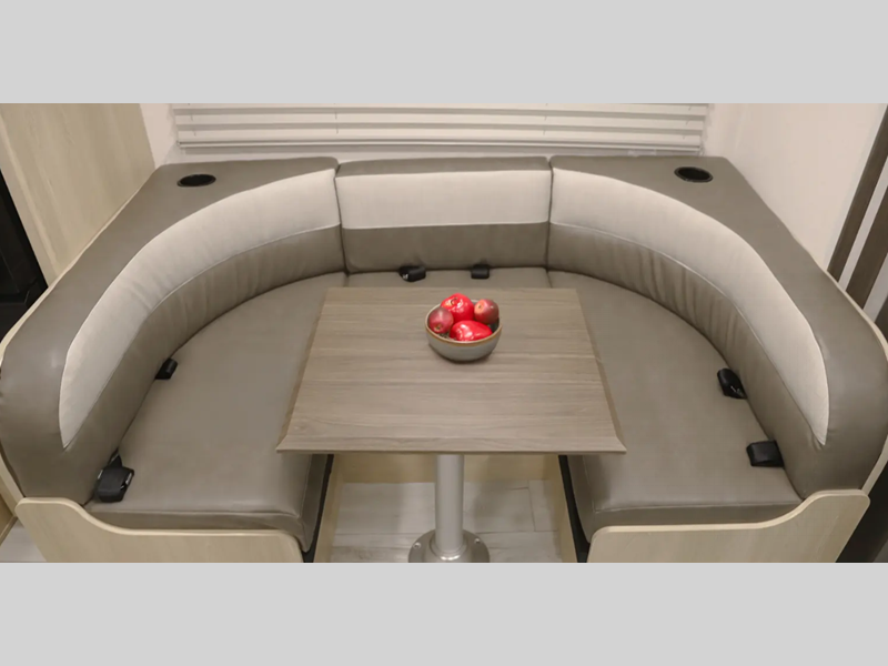 A few standout features across the lineup include an on-demand tankless water heater, a power patio awning with LED lighting, and a seamless one-piece TPO roof. Inside, you’ll find premium one-piece thermofoil countertops, durable vinyl flooring, a shower skylight, a high-rise kitchen faucet, and more.