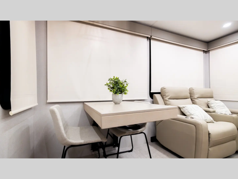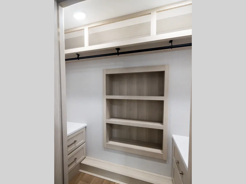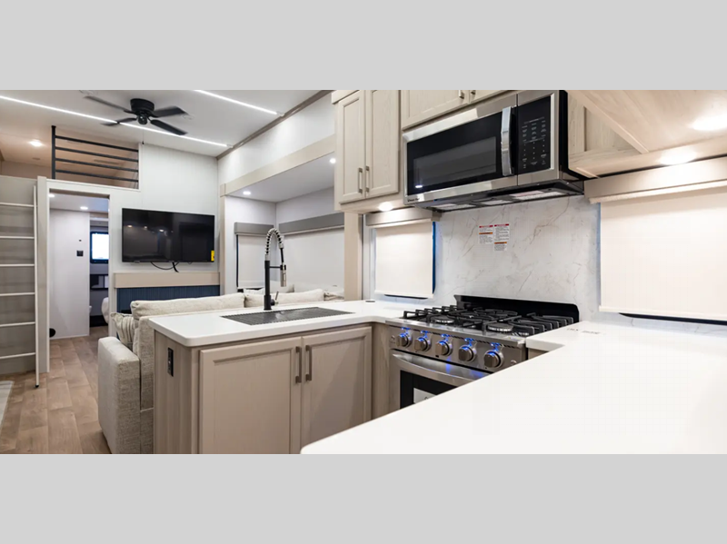 The 8' 5" wide-body provides more interior space to stretch out, and you'll be met with high-end kitchen amenities plus a larger bedroom and bath for a more residential feel. The mandatory Comfort Package includes upgraded residential style hardware, marine grade woven flooring in the slides, and many more luxuries. You'll appreciate the 6-point hydraulic leveling system and the upgraded suspension, along with a tire pressure monitor system and three A/C units, plus more features within the mandatory Voyager Package!