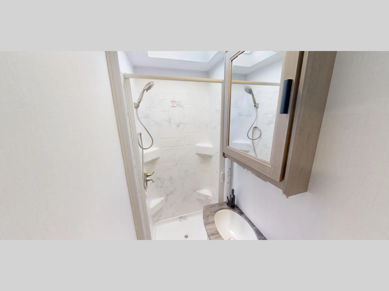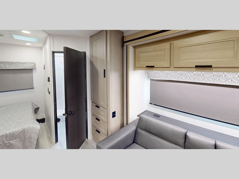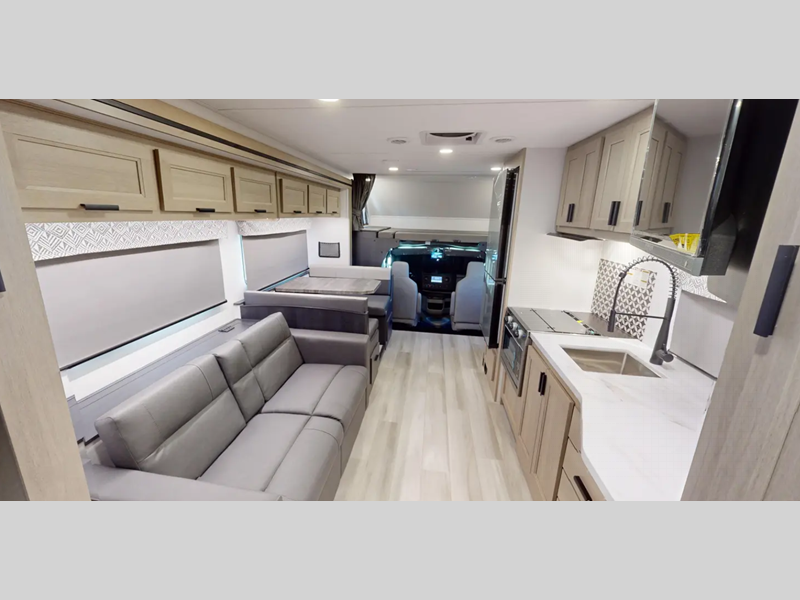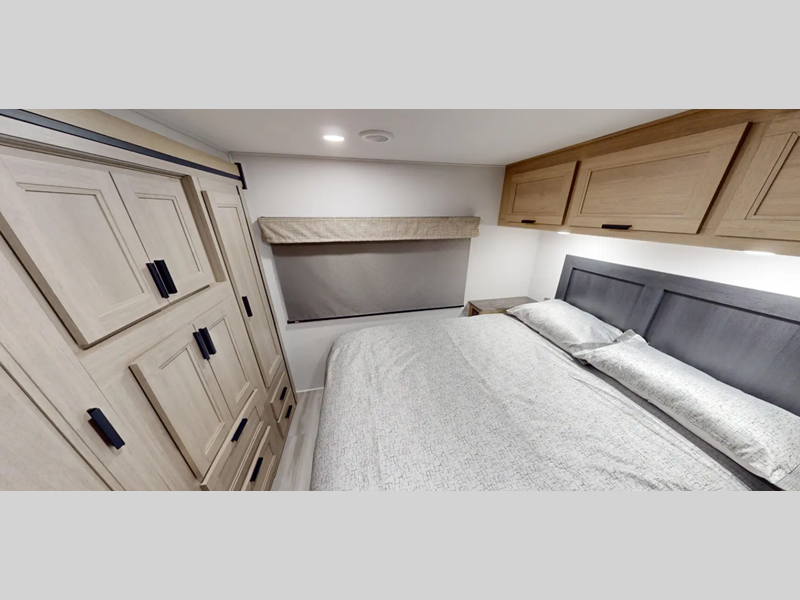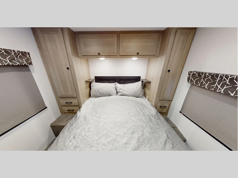 Durable construction includes SuperLite composite substrate, block foam insulation, a crowned, laminated fiberglass roof, and a one-piece seamless fiberglass cap. Some top features include a backup camera/side view cameras with a 3-way monitor, blackout roller shades, soft touch self-closing drawer guides, and much more!
