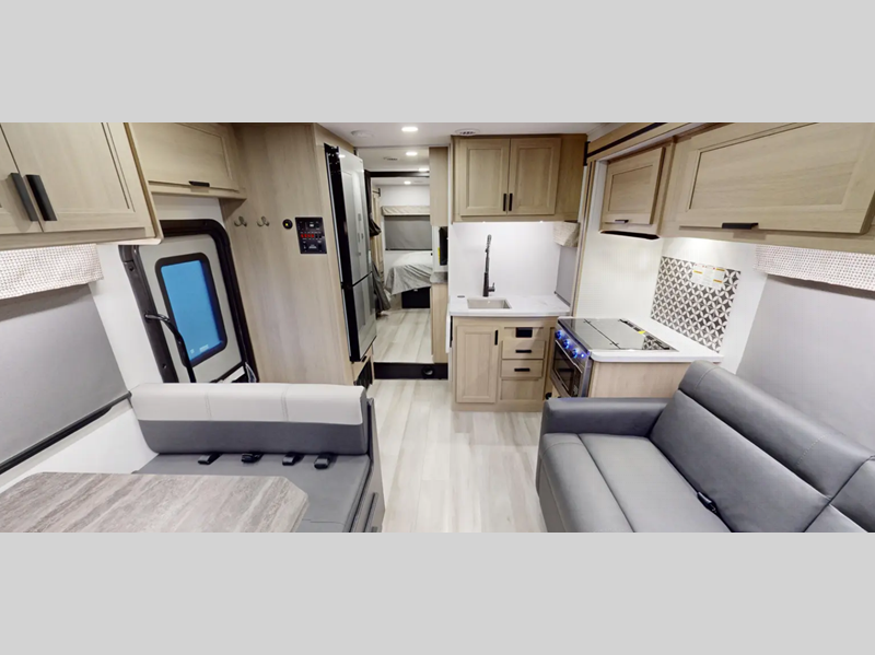 Sleeps 5 Slides 1 Length 23 ft 10 in Ext Width 8 ft 5 in Ext Height 11 ft 3 in Hitch Weight 5000 lbs GVWR 12500 lbs Fresh Water Capacity 35 gals Grey Water Capacity 32 gals Black Water Capacity 27 gals Furnace BTU 30000 btu Generator 4.5KW Gas Fuel Type Gas Chassis Ford E350 Fuel Capacity 55 gals Wheelbase 158 in Number Of Bunks 1 Available Beds Queen Refrigerator Type 12V Refrigerator Size 10.7 cu ft Cooktop Burners 3 Shower Size 24" x 32" Number of Awnings 1 Axle Weight Front 5000 lbs Axle Weight Rear 8500 lbs LP Tank Capacity 41 lbs Water Heater Capacity 6 gal Water Heater Type DSI Gas/Electric AC BTU 13500 btu TV Info LR 12V LED Awning Info 14' Power w/ LED Light Strip Gross Combined Weight 18000 lbs Shower Type Standard Electrical Service 30 amp Similar Floorplans