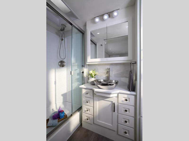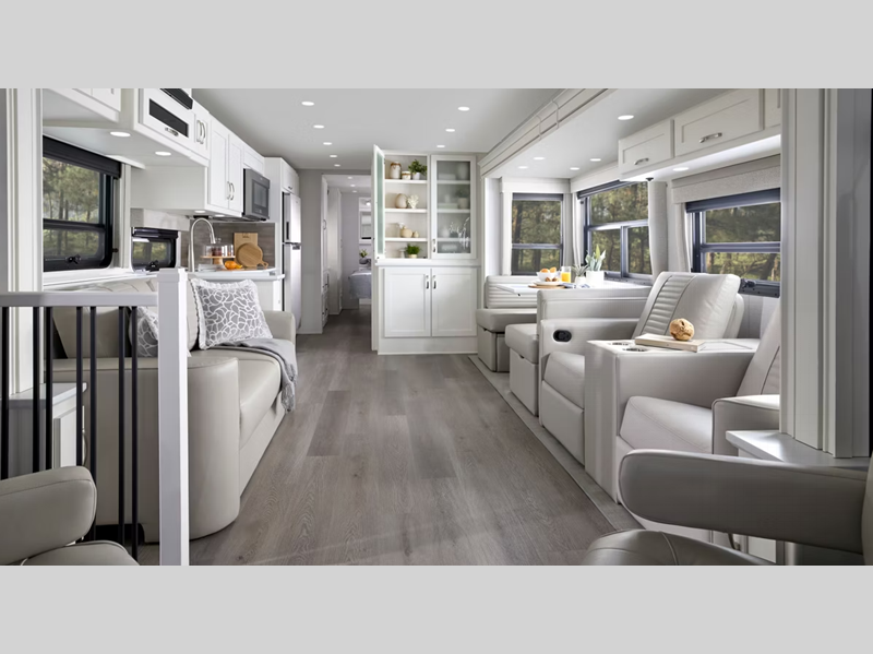 - Drop Down Bunk Bed Over Drvr/Pass Seats Extends to Windshield with Bunk Ladder & Overhead Cabinet