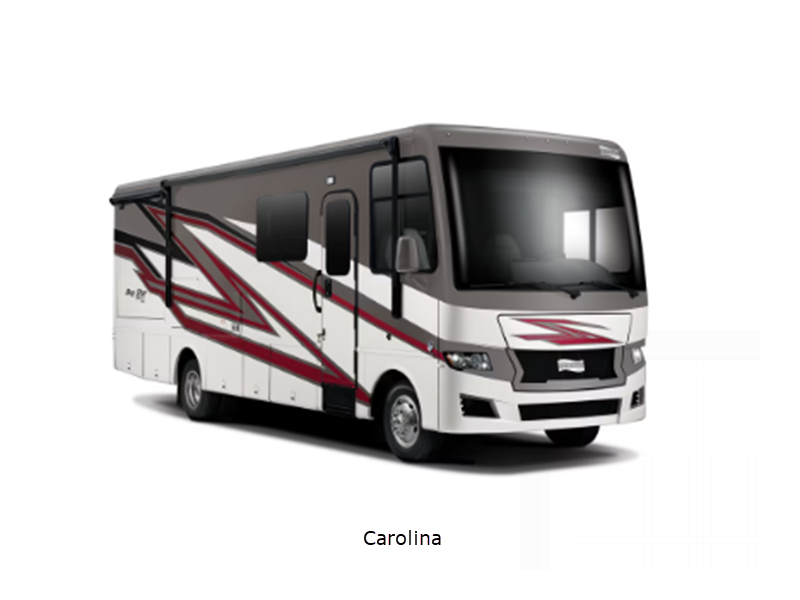 Sleeps 5 Slides 2 Length 30 ft 11 in Ext Width 8 ft 6 in Ext Height 12 ft 4 in Int Height 6 ft 8 in Interior Color Arlo, Stowe, Vista Exterior Color Carolina, Depoe, Traverse Hitch Weight 5000 lbs GVWR 22000 lbs Dry Weight 18800 lbs Cargo Capacity 3200 lbs Fresh Water Capacity 75 gals Grey Water Capacity 60 gals Black Water Capacity 40 gals Furnace BTU 30000 btu Generator 5.5 kW Cummins Onan Fuel Type Gas Engine 7.3L V8 Chassis Ford F-53 Horsepower 335 hp Fuel Capacity 80 gals Wheelbase 200 in Available Beds Queen Torque 468 ft-lb Refrigerator Type Norcold Refrigerator Size 8 cu ft Cooktop Burners 3 Shower Size 40" x 30" Number of Awnings 1 Axle Weight Front 8000 lbs Axle Weight Rear 15000 lbs LP Tank Capacity 25 gals Water Heater Capacity 6 gal Water Heater Type Gas/Electric AC BTU 27000 btu TV Info LR Samsung LED TV, BR 32" Samsung LED TV Awning Info Carefree Travel'R Side Awning with LED Lighting Gross Combined Weight 26000 lbs Shower Type Standard Electrical Service 30 amp Similar Floorplans