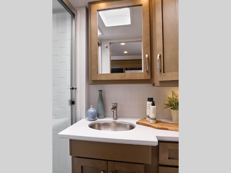 - Drop Down Bunk Bed Over Driver/Passenger Seats Extends To Windshield with Bunk Ladder* (Floor Plans 2813, 3014 & 3022)