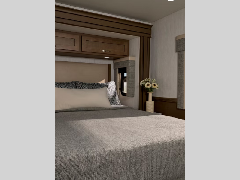 The exterior is the first thing to catch your eye with its full-paint Masterpiece Finish, and you'll appreciate the smart level hydraulic leveling jacks with a Bluetooth compatible touch pad for easy set up at the campsite. Head inside to find Williamsburg furniture, vinyl plank flooring, polished solid surface countertops for added luxury, plus stylish decor options.
