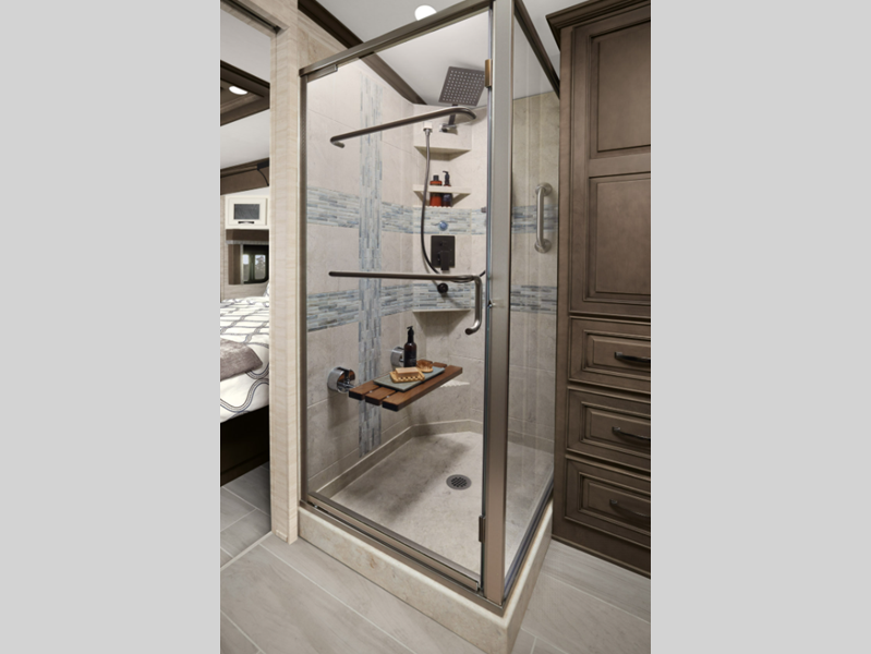 - Queen-Size Bed with Wardrobe and 57" x 36" Roll in Shower on 4311 Floor Plan