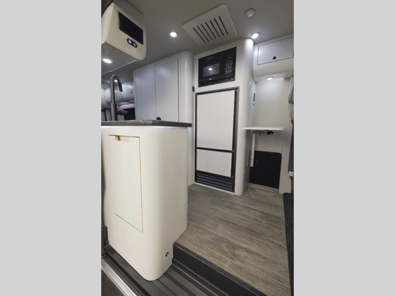 Sleeps 2 Length 24 ft 7 in Ext Width 6 ft 11 in Interior Color Cream, Ebony, Stone Gray, White Twill Exterior Color Arctic White, Iridium Silver, Jet Black, Other OEM Color, Custom Partial Paint or Full Body Paint GVWR 11030 lbs Fresh Water Capacity 29 gals Grey Water Capacity 29 gals Black Water Capacity 13 gals Fuel Type Diesel Chassis Mercedes-Benz Sprinter 3500XD Fuel Capacity 24.5 gals Wheelbase 170 in Refrigerator Type 12V Refrigerator/Freezer Refrigerator Size 3.75 cu ft Cooktop Burners 2 Number of Awnings 1 Water Heater Type Tankless On Demand TV Info (2) Smart HDTV Awning Info Power w/LED Lighting and Seismic Sensory Shower Type Wet/Bath Shower Electrical Service 30 amp -