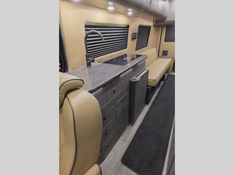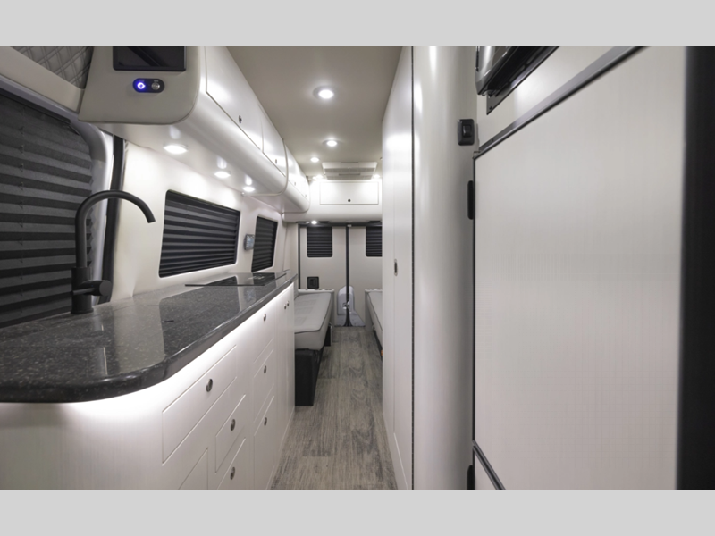 Sleeps 2 Length 24 ft 7 in Ext Width 6 ft 11 in Interior Color Cream, Ebony, Stone Gray, White Twill Exterior Color Arctic White, Iridium Silver, Jet Black, Other OEM Color, Custom Partial Paint or Full Body Paint GVWR 11030 lbs Fresh Water Capacity 29 gals Grey Water Capacity 29 gals Black Water Capacity 13 gals Fuel Type Diesel Chassis Mercedes-Benz Sprinter 3500XD Fuel Capacity 24.5 gals Wheelbase 170 in Refrigerator Type 12V Refrigerator/Freezer Refrigerator Size 7.5 cu ft Cooktop Burners 2 Number of Awnings 1 Water Heater Type Tankless On Demand TV Info Smart HDTV Awning Info Power w/LED Lighting and Seismic Sensory Shower Type Wet/Bath Shower Electrical Service 30 amp -