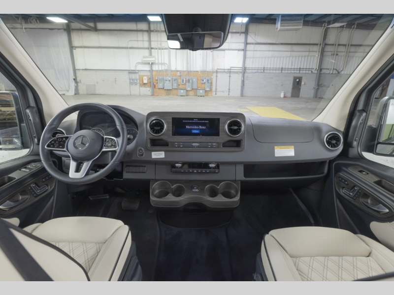 There are a variety of floorplans to choose from, each with a shower and toilet for added convenience, and AWD is available if you choose. The Mercedes-Benz RV suspension bundle (RV1) will provide maximum drivability, and there are added safety features for your peace of mind. Inside, you'll love the marine grade woven flooring plus custom woodwork with satin finish and solid surface countertops for added luxury.